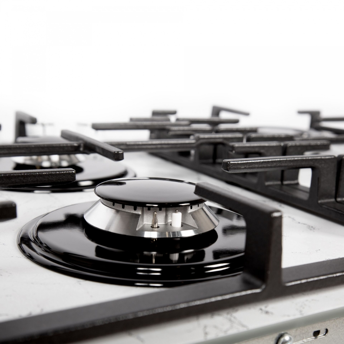 За внешней красотой скрываются передовые технологии. Четыре конфорки, одна из которых — двухзонная, позволяют гибко регулировать диаметр нагрева под посуду разного размера. Все горелки оснащены системой газ-контроля, исключающей риск утечки газа. Удобный электророзжиг интегрирован в поворотные ручки.