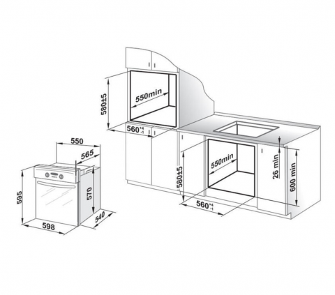- Размеры монтажного проема, ШхГхВ, см: 56x55x58
